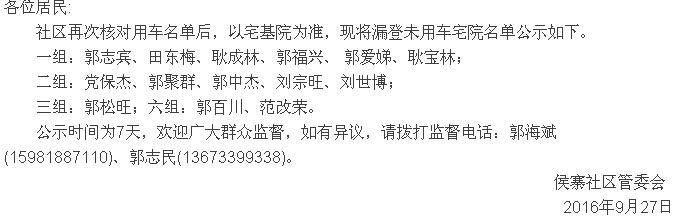 阳光侯寨——漏登拆迁未用搬家车名单公示