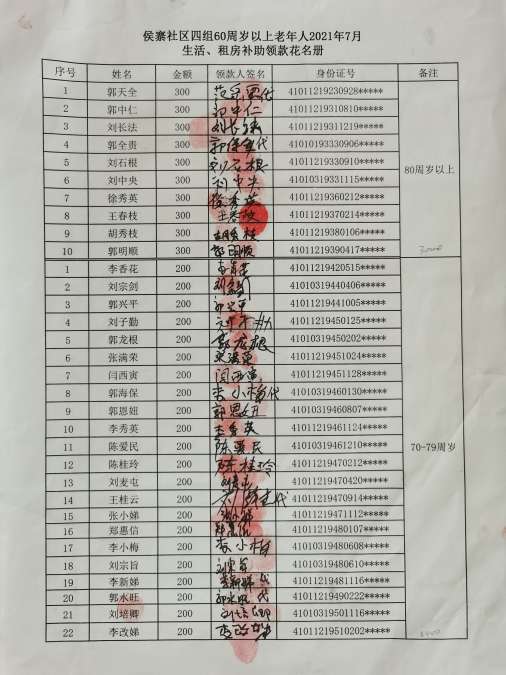侯寨社区“孝老敬亲”2021年7月份租房补助领取公示表
